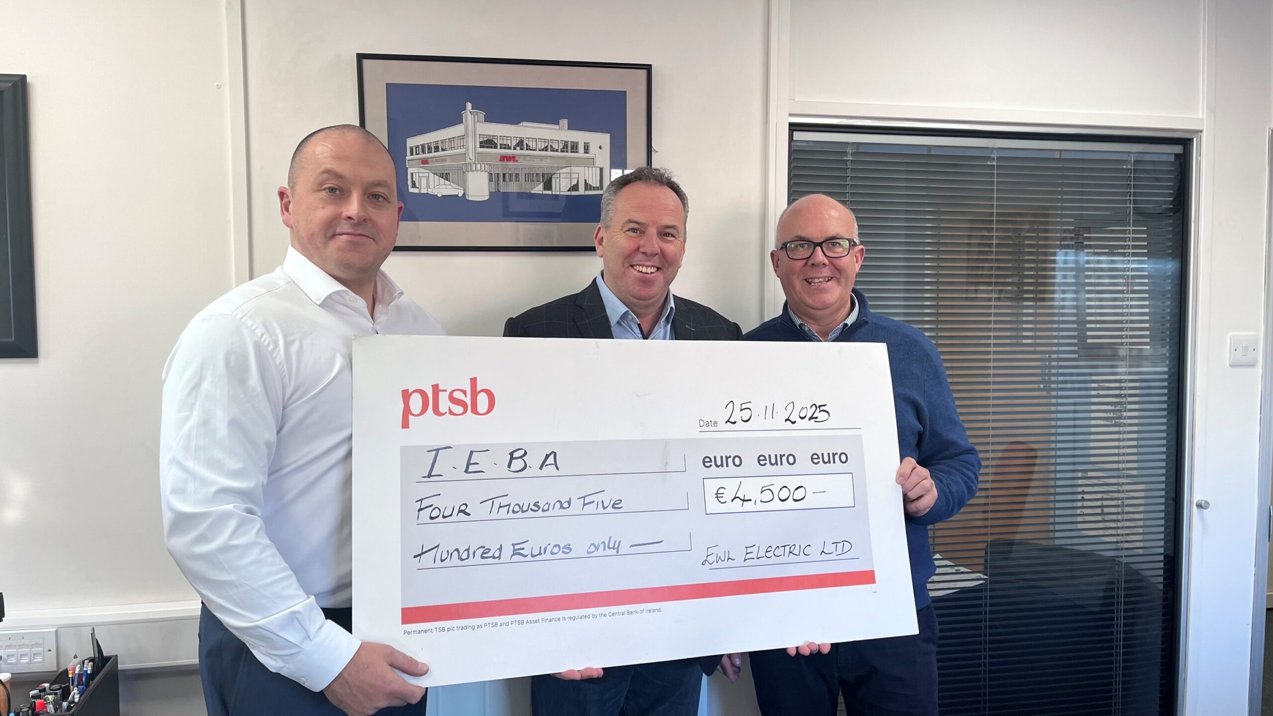 IEBA is delighted to acknowledge a generous donation of €4,500 from the EWL Electric Group. The funds were raised at the EWL Electrical Suppliers event